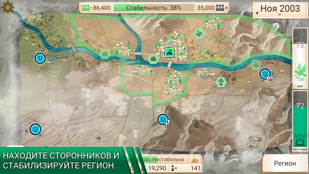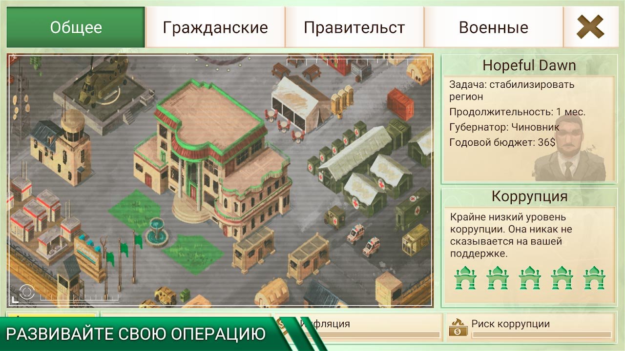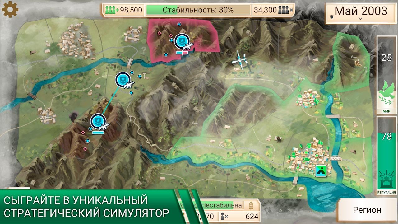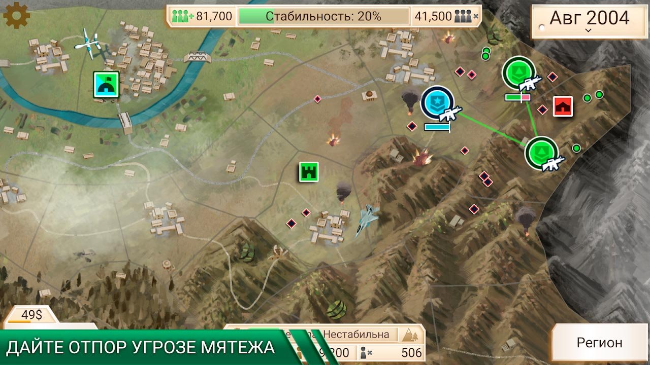 Несмотря на то, что вторая мировая война уже давно кончилась, все еще продолжаются проблемы. Например, в современном мире есть угроза террористических группировок или могут в любой момент может подняться мятеж или народ взбунтуется. В Rebel Inc пользователям необходимо будет следить за стабилизацией государства, и выполнять самые важные в мире функции. Попытайтесь правильно подбирать баланс между обычными гражданскими силами и военными. В любой момент все это может просто взорваться, поэтому думайте максимально тщательно. Привлекайте на свою сторону сообщников и следуйте их интересам. Главная задача в стратегии не дать выйти за пределы той ситуации. Эта игра была создана одними очень крутыми разработчиками, которые придумали стратегию про вирусную атаку, но теперь все усложняется.