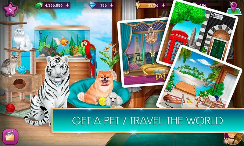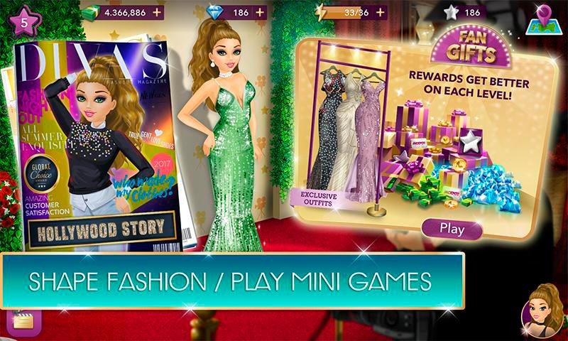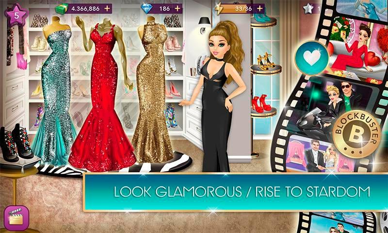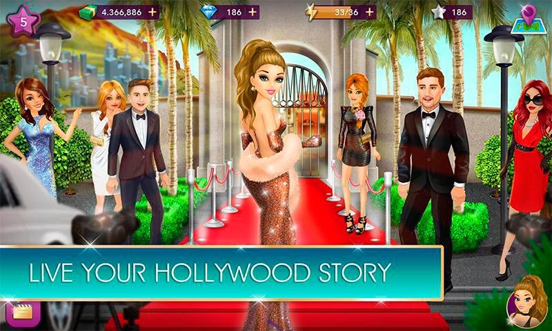 Теперь девочки могут построить собственную карьеру в роли звезды кинофильма, и тогда можно будет попасть в Голливуд и там насладиться красотой. Путешествуйте по городам, показывайте свою красоту, заводите новые знакомства и общайтесь с толпами фанатов. Это самая реалистичная история про звезд, знаменитых людей и их поведение в обществе. Создавай модные наряды для себя, снимайся в крутейших блокбастерах и прогреми звездностью на весь мир. Теперь каждый пользователь может создать свою индивидуальную историю, и он познает жизнь легенд с большими подробностями. Множество локаций ждет девочек в Hollywood Story и везде можно заняться делом. Побывай в Беверли-Хиллз, где тебя будут преследовать поклонники, снимайся в Лас-Вегасе и отдыхай на Манхэттене.