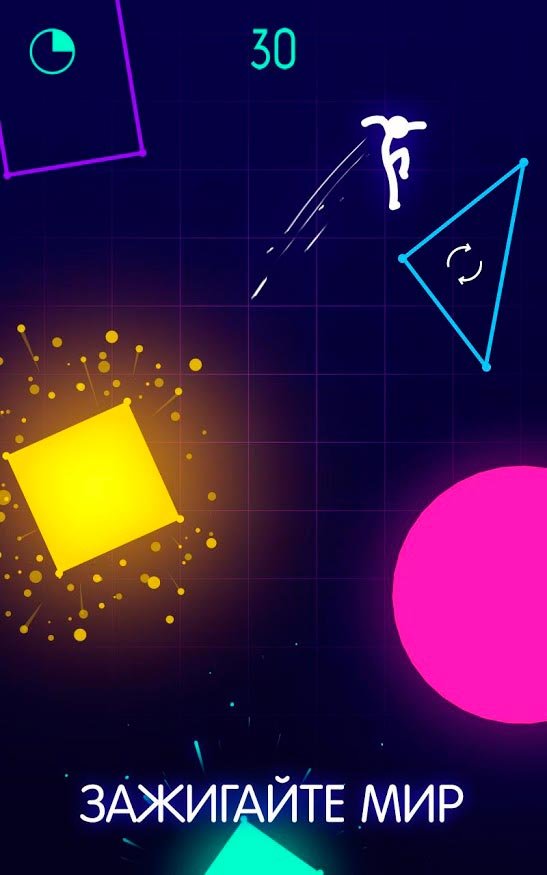 Воспользуйтесь фигуркой и выполняйте огромное количество прыжков в процессе, чтобы пробиться еще дальше. Скользите, выполняйте трюки и подбирайтесь все дальше к финалу, через фигуры, подсвеченные неоновым цветом. Соберите как можно больше звездочек в Light-It Up, чтобы стать лидером и получите бонусные предметы. Возможно, вы сможете стать лидером среди остальных и быстро добьетесь шикарных достижений. Главное всегда быть на чеку, чтобы пройти больше всех уровней. Используйте смертельно опасные приемы и не бойтесь выполнять их в процессе действий. Главное всегда быть точным, потому что любой промах будет стоить герою провала. Не падайте и зажигайте все новые фигуры неоновым цветом. Такая аркада быстро стала популярной и поэтому у нее полно функций.