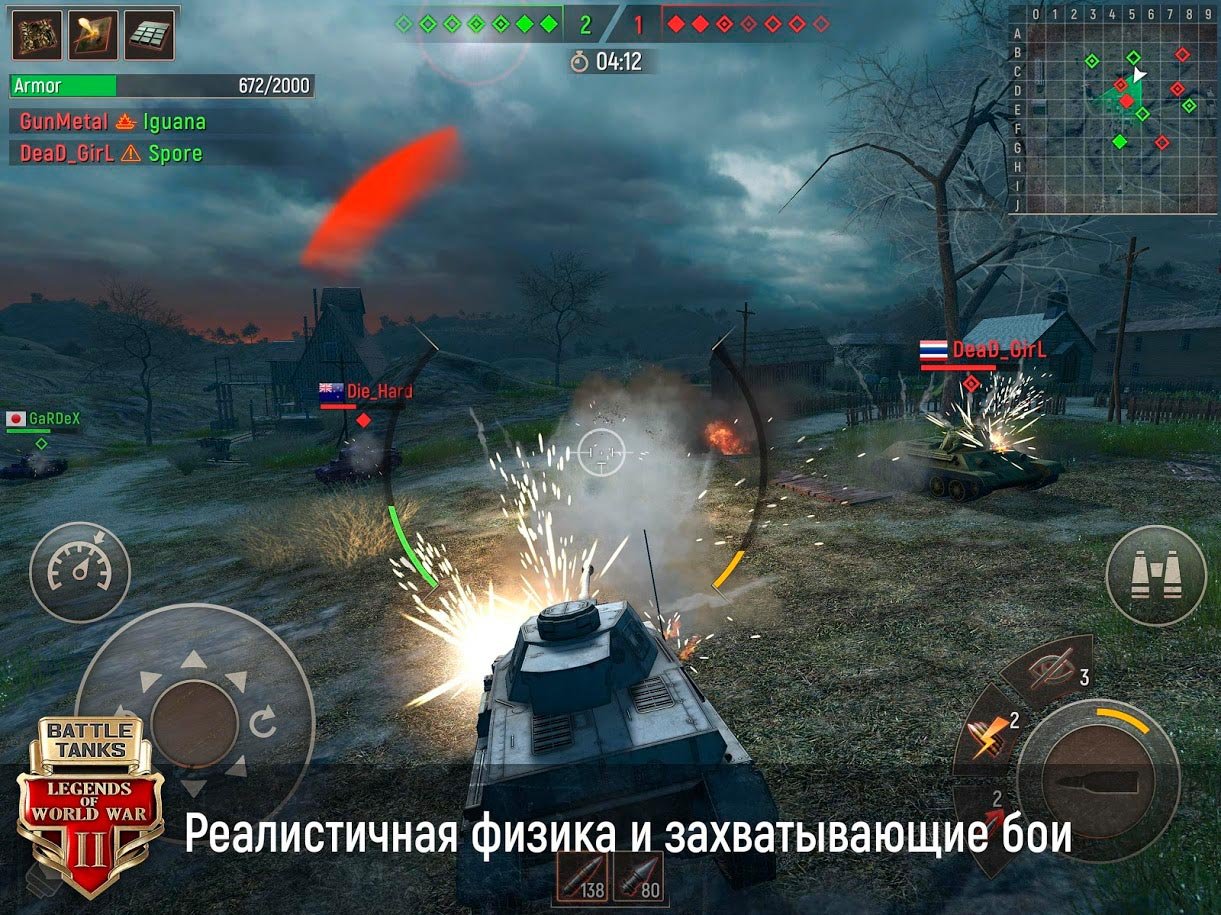 Пришло время встретиться с легендарным шутером о танкистах, в котором поединки проходят в режиме реального времени, в формате 10 на 10. Кроме того, можете поиграть со случайными противниками, где каждый будет сам за себя. Есть сотни бронированной техники, реально существующей и за управление каждой можно пересесть. Используйте тактику и улучшения, чтобы добиваться преимущества над своими оппонентами. В Battle Tanks: Legends of World War II каждый может испытать боевые навыки и называться легендой. Для этого необходимо только сражаться и никогда не трусить. Есть множество полей для сражений, и все они сделаны в великолепной графике. Выбирайте страну, и вам откроется доступ ко всем танкам государства.