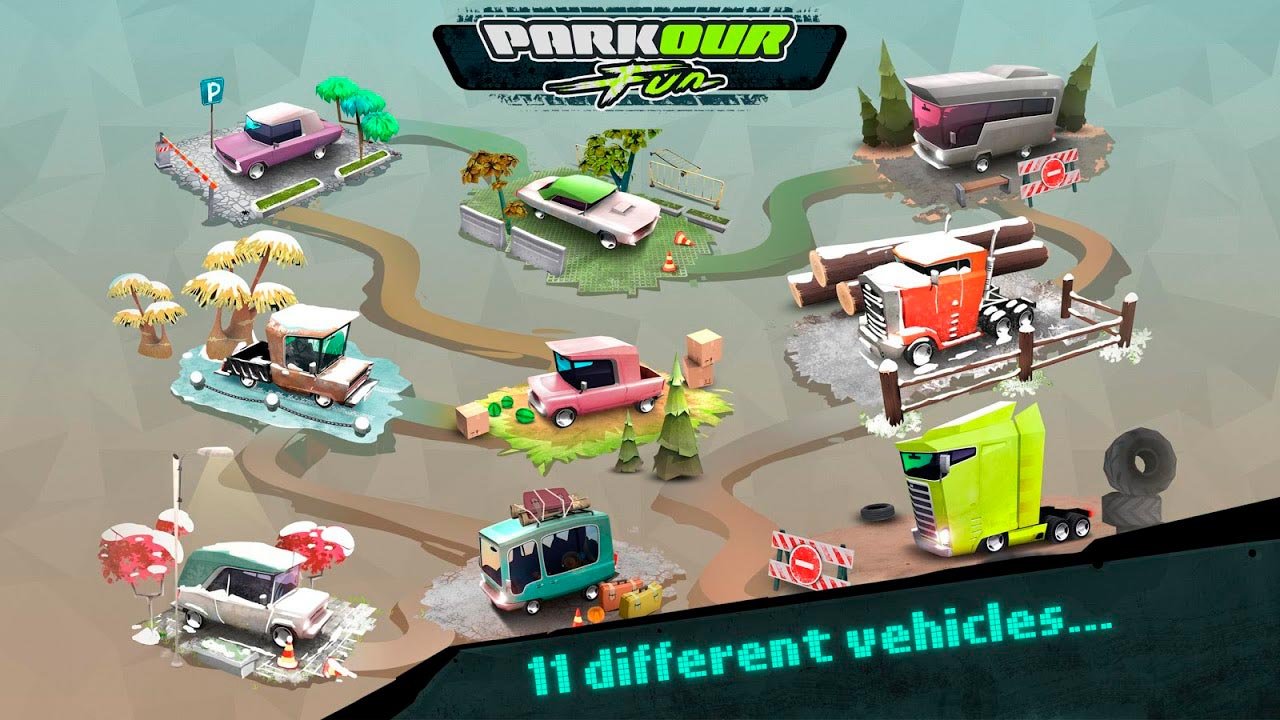Если вы готовы испытать себя в сложнейших ситуациях вождения, тогда нужно попробовать уже сегодня. Садитесь за руль автомобиля и прокатитесь по действительно труднейшим местам, там, где простой водитель не смог бы справиться с заданием. Уже подготовлено больше 40-ка оригинальных трасс бездорожья, где требуется поставить машину. Иногда вам придется сделать это с прицепами, в дождливую погоду или с другими сложностями. Попытайтесь справиться с уровнями в PARKour Fun при снеге или дикой грязи. Испытания ожидают вас на каждом очередном этапе и нужно подготовиться к их выполнению. Таким образом, вы станете лучшим водителем в истории и сможете даже устроить соревнование против друзей. Самое главное быть очень осторожным и тогда точно все получится.Особенности игры