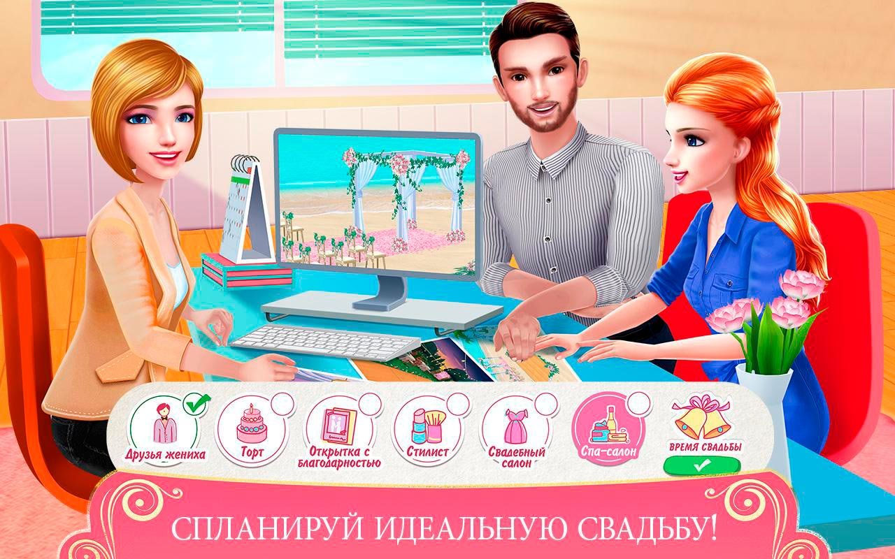 Открой новый сезон свадеб и организуй свою первую. Помогай влюбленным парам правильно спланировать торжество и в конце концов получай удовольствие от результатов. Естественно, в таком важном деле необходимо продумать абсолютно каждую мельчайшую деталь. Жених и невеста, которые обратятся к тебе, должны стать самыми счастливыми. выполняйте множество заданий и закрывайте все цели, чтобы работа закончилась отличным результатом. В Свадьба мечты — нарядись и танцуй как невеста есть огромное количество функций и нарядов для персонажей. Используй это все, создавая неповторимые образы. Поменяй макияж, выбирай фату, платье, костюм для жениха и переходи к другим делам. также необходимо приготовить торжественный торт и поставить правильно танцы. В результате героиня сможет наслаждаться своим творением.