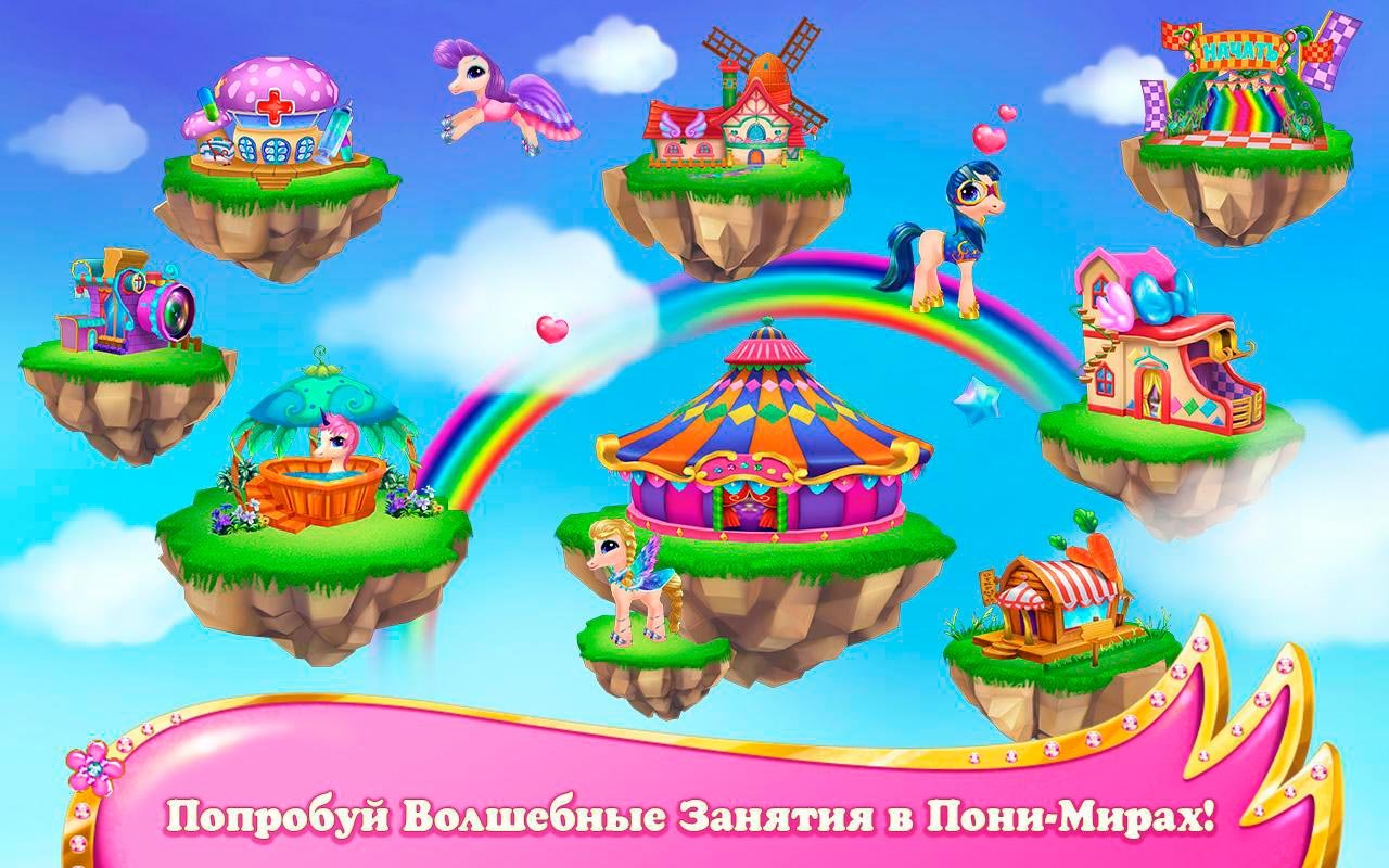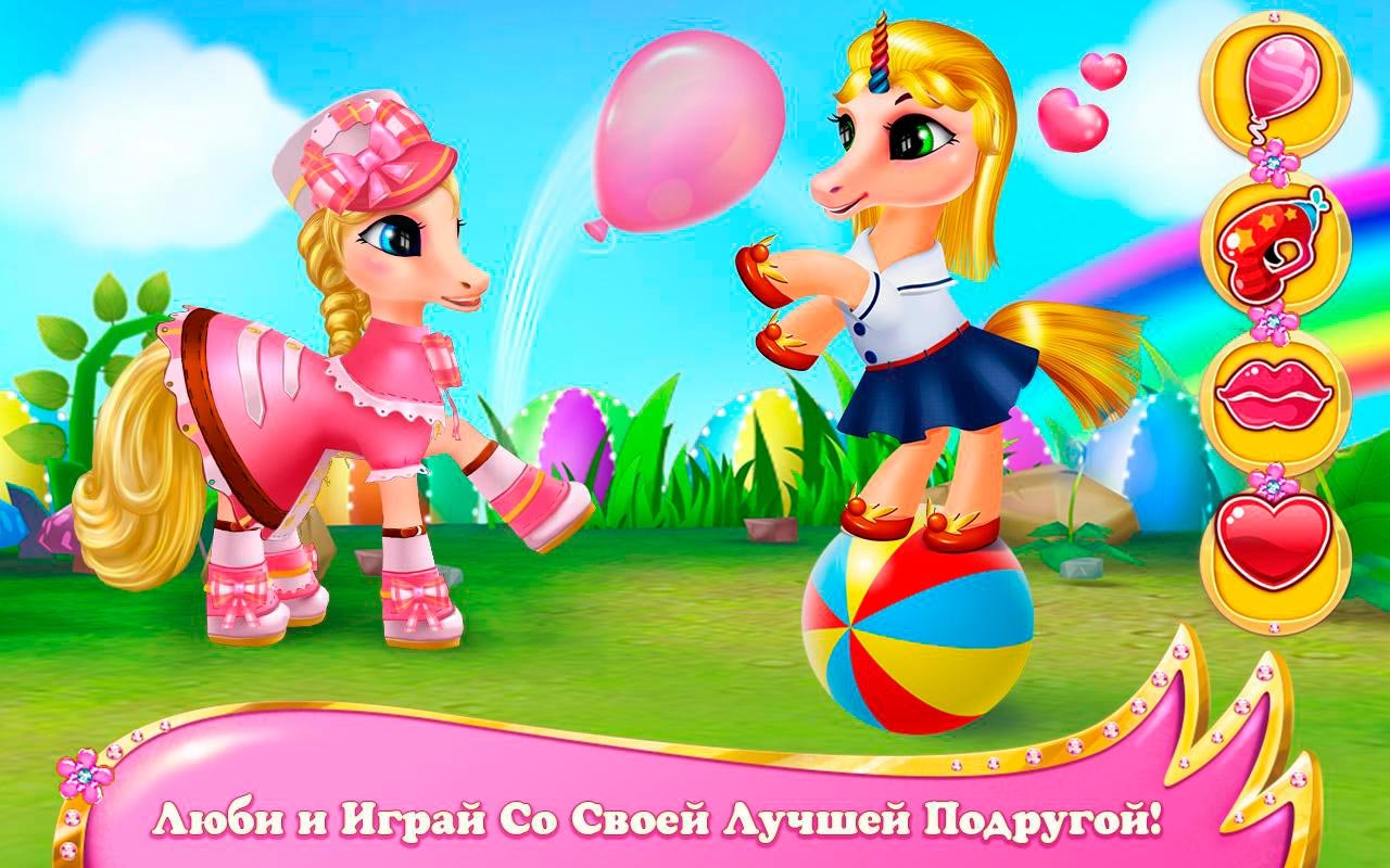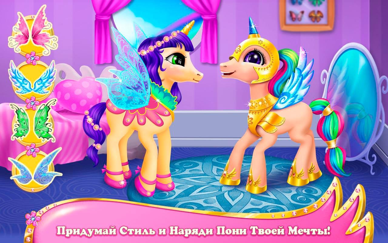 - Много предметов и функций для изменения внешности пони;