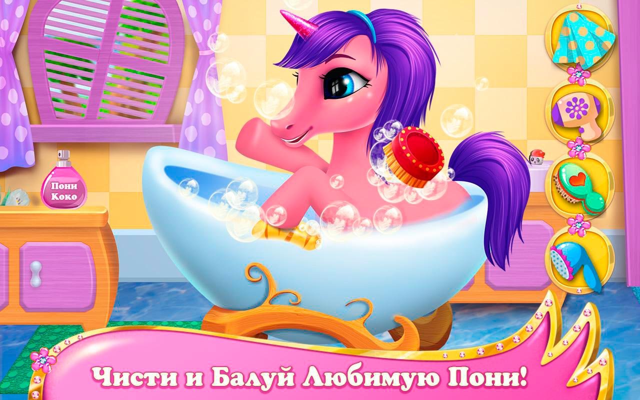 Тебе обязательно понравится пони под именем Коко, ведь это волшебный питомец. Наряжайте ее, как захотите и используйте при этом только собственные навыки в дизайне. Используй массу предметов и аксессуаров, чтобы изменять внешний стиль и показать созданное чудо остальным. Ухаживайте за своим питомцем и кормите ее постоянно, а также в нужный момент искупайте, ведь играя на улице, она будет мараться. Пони Коко - Питомица Мечты действительно лучшая игра в жанре пони и она подарит много приятных впечатлений пользователям. Вселенная Пониландии полна удивительных особенностей и модных штучек. Следи внимательнее за своей подругой и сделай из нее самую счастливую лошадку во всем мире. Она станет отличной спутницей и будет помогать во всех делах.
