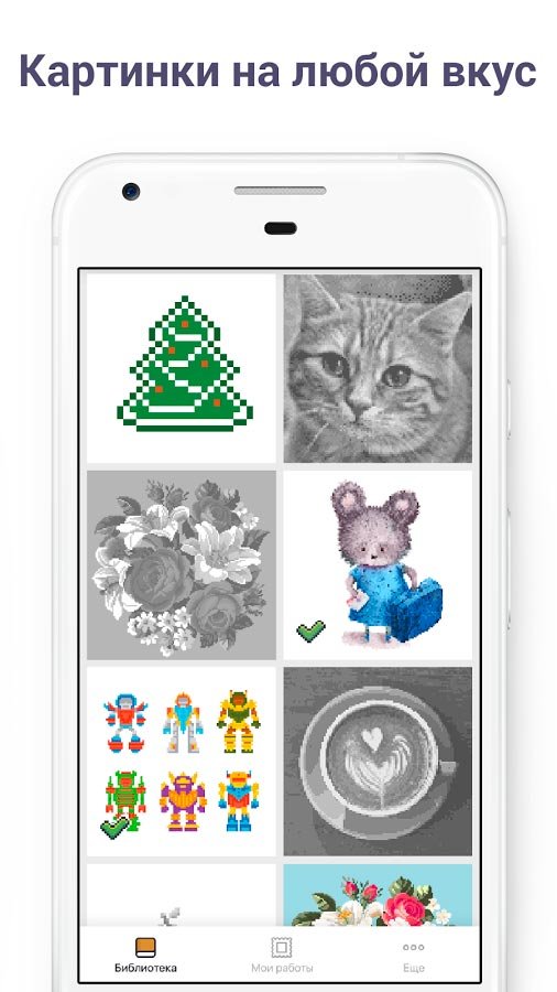 Когда сможете скачать Pixel Art - Раскраска по номерам на андроид начните выбирать из огромного количества картинок, которые распределены по тематическим категориям и вкусовым предпочтениям. Здесь есть разные узоры из красивых красок, представители животного мира, шикарные цветы и много всего другого, от чего можно получать лишь приятные эмоции. Пользователю точно понравится удобно построенные геймплей и дизайн раскраски. Вы должны будете красить в соответствии с номерами, а будет это очень интересно и главное легко. Постоянно получайте в набор новые картинки, потому что коллекции пополняется ежедневно.