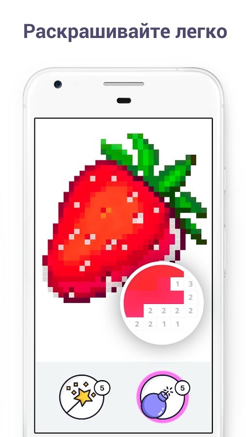 Пользуйтесь разнообразными инструментами, которые позволяют раскрашивать картинки и рисунки. Здесь есть волшебная палочка, позволяющая одновременно раскрашивать большое количество ячеек под один цвет. Еще один бонус в виде гранаты, которая при взрыве раскрасит все стоящие рядом числовые ячейки. Делитесь готовыми шедеврами со своими друзьями и дарите им приятные впечатления. Это можно делать в один клик через социальные сети или электронную почту. Научитесь этому простому, но такому интересному делу.