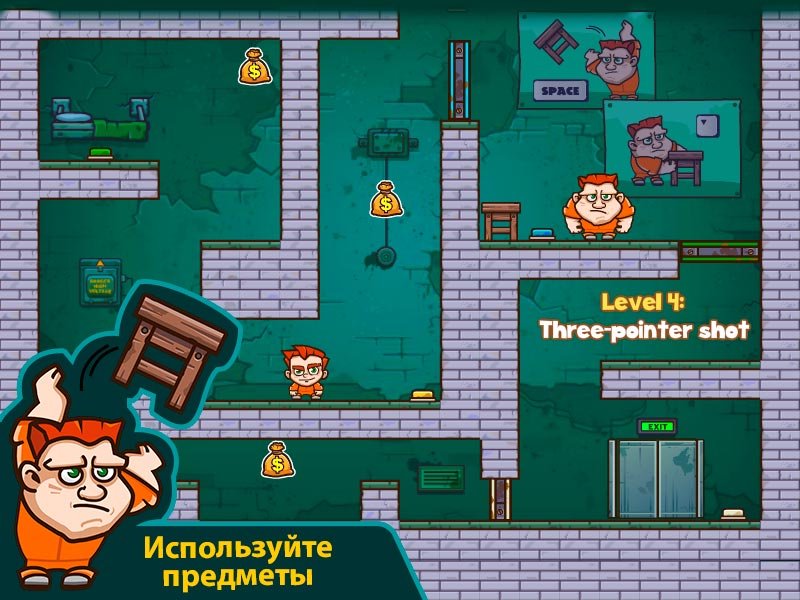 Когда сможете скачать Money Movers 2 на андроид, познакомитесь с уникальной историей сюжетной линии, где два брата решили попасть намеренно в тюрьму строго режима. Ранее посадили сюда их отца, причем незаконно. Теперь они обязательно должны будут спасти его отсюда, решая головоломки. В этом игровом мире очень опасные надзиратели, а система безопасности находится просто на высочайшем уровне. Постарайтесь стать самым лучшим в этом игровом мире и справляйтесь с любыми заданиями, какими бы серьезными они не были. Почувствуйте атмосферу тюремной жизни и найдите пути отступления.Продолжение побега-головоломки