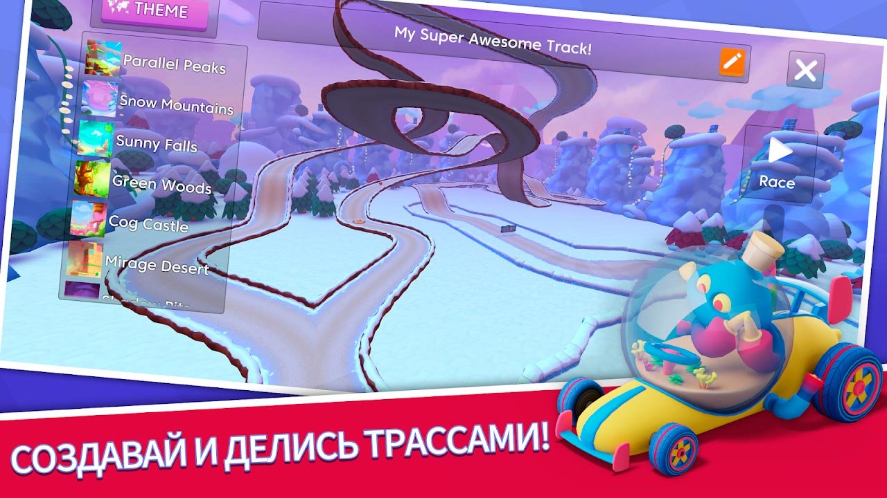 Помогите мультяшным персонажам пройти огромное количество уровней в этой аркадной гонки и заполучайте как можно больше звездочек. Сражайтесь против злобных врагов и постарайтесь стать лучшим. Запускайте магический двигатель на своей тачке и отправляйтесь погонять, где можно будет добиться лучших наград, а также стать лидером. Впереди игроку предстоит познакомиться с веселыми машинками. В качестве сюжета Starlit на колёсах: Супер Карт нужно будет спасать друзей и улучшать свои тачки, чтобы они могли собрать как можно больше наград. Кроме того, занимайтесь собственной отдельной комнатой и составляйте туда трофеи. Покатайтесь на более чем 10-ке оригинальных трасс и на каждой будьте уверены, ждут свои испытания.