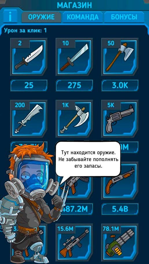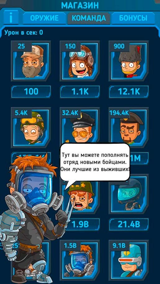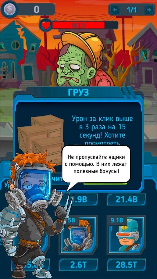 Теперь игроку предстоит выступить в качестве охотника за зомби и даже принять на себя роль командира профессионального отряда. Перед героем будет стоять одна единственная задача, уничтожить толпы ужасных и кровожадных зомби. Тебе нужно придумать идеальную стратегию и тактику, чтобы удачно совершить нападение. Вооружайте своего бойца и его отряд до зубов современным оружием. В армии героя будут такие персонажи как киборги-убийцы, полицейские, ФСБ и другие. Предотврати главную угрозу всему человечеству в Охотник на зомби – кликер. Постарайся выжить и пользуйся для этого специальными гаджетами, а также прокачивай уровень своих героев. Постоянно докупайся новым оборудованием и увеличивай свое преимущество над армией монстров.Особенности игры Охотник на зомби - кликер