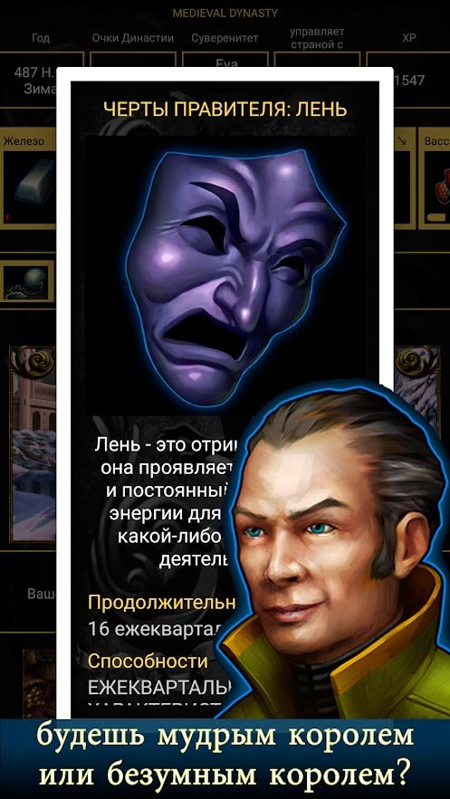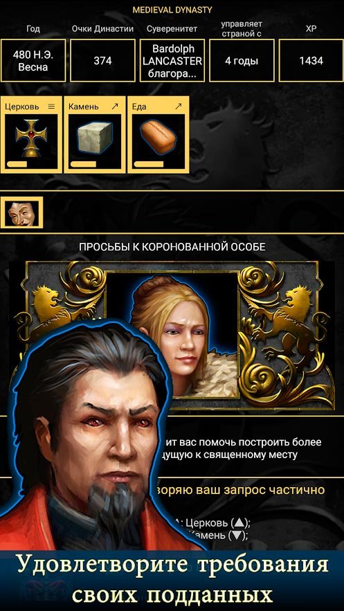 Начинайте развивать собственную династию королей, в этом масштабном симулятор, сделанном по временам Средних Веков. Здесь пользователи смогут познакомиться с жизнью королей и героев того времени. На ваш трон будет огромное количество претендентов, но никому нельзя позволять себя одолеть. Защищайте свое королевство и пользуйтесь для этого разными методами. Игроку в Medieval Dynasty: Игра Королей предстоит узнать выгоду дипломатических отношений и военной армии. Подумайте над своим образом, точнее над тем, каким вас запомнит народ в королевстве. Например, вы можете стать очень мудрым правителем и безумным тираном. Выбор ваш, как действовать в процессе прохождения данного симулятора. К вам могут обращаться люди с самыми разными чинами, а также званиями. Думайте, прежде чем сделать свой следующий шаг.