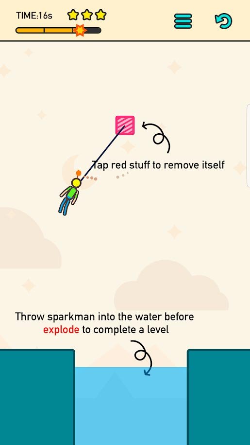 Включайте головы, перед тем как запланируете запустить эту головоломку. Здесь на каждом уровне вас ожидают уникальные испытания, где нужно придумать точную стратегию, способную помочь продвинуться дальше. Используйте свое креативное мышление и пользуйтесь нестандартными способами. Изначально вы сможете участвовать в более простых уровнях, но потом придется думать все больше и тщательнее. Посмотрите, насколько далеко удастся зайти, чтобы собрать все три звездочки. Если вам просто хочется развлечений, тогда эта головоломка не для вас, но если желаете напрягать свои мозговые извилины, то Sparkman создана только для тебя. Попробуй изобрести свой уникальный способ для решения очередного задания, и он поможет тебе пройти быстрее.Особенности игры Sparkman