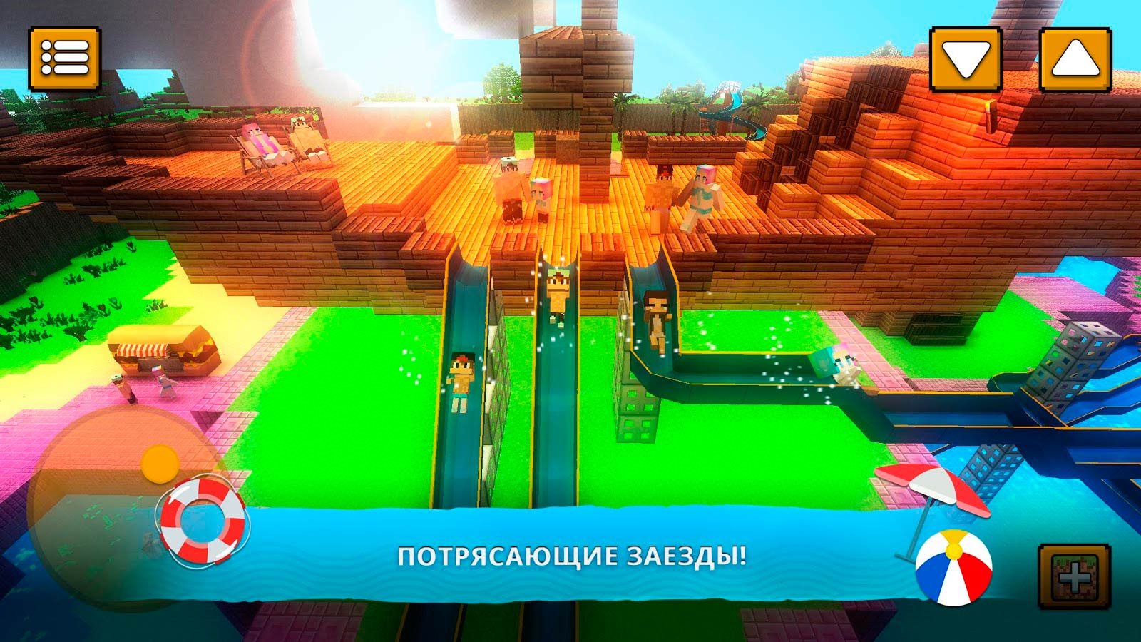 Проводите все свое время за строительством, когда сможете скачать Аквапарк Крафт: 3D приключение на водных горках на андроид и наконец, впустите первых своих посетителей. Как только ваш парк будет наполнен новыми клиентами, они будут счастливыми и заплатят хорошие деньги, чтобы прокатиться на таких безумных горках. Пусть они мчаться на сумасшедшей скорости по экстремальным водным аттракционам, а вы будете наслаждаться просмотром этого действия, и получать удовольствие. Более того, есть возможность поставить даже водные американские горки, чего не придется сделать в реальности.Веселый симулятор аквапарка