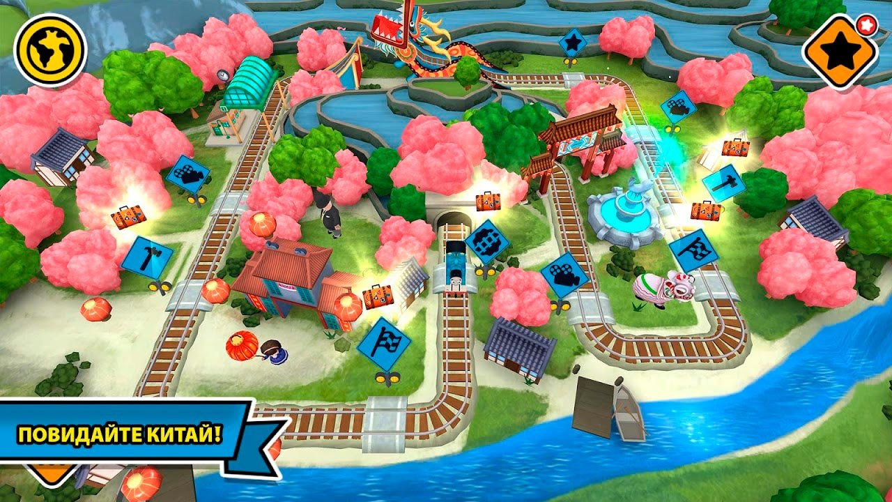 Вместе с забавным паровозом вас будут ждать увлекательные путешествия и поездки по великолепным местам. Познайте весь этот мультяшный мир и исследуйте новые пространства. Впереди ожидает огромное количество новых событий и миссий, выполняя которые можно подняться на уровень выше и получить приз. Игроки своими руками в Томас и его друзья: Приключения! Могут создать железную дорогу и для этого могут использовать разнообразные предметы. Этот симулятор про Томаса может подарить полную свободу для творчества, пользоваться которой могут как взрослые, так и дети. Присутствует несколько десятков стран в веселом формате, которые проверят ваш потенциал и способности.