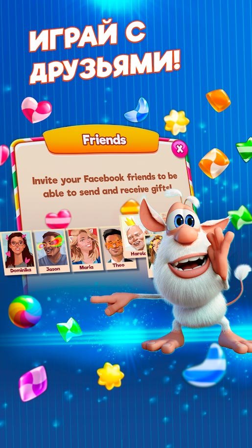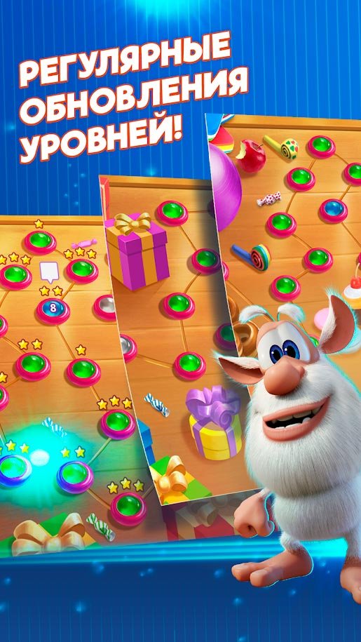 Буба жить не может без веселья, и он постоянно придумывает что-нибудь новенькое, чтобы продолжить путешествовать и дарить людям радость. Вместе с ним главный герой будет поднимать себе настроение ежедневно и соберет огромное количество конфет, разбросанных по всему домику. Узнайте как можно больше нового и интересного о жизни этого персонажа. Подбирайте правильные линии из сладостей и получайте бонусные предметы. Пользователям в Буба: Конфетное Приключение "Три в ряд" будет доступно больше сотни оригинальных и затягивающих уровней. Ежедневно разработчики будут добавлять в головоломку больше новейших квестов и испытаний, в награду за которые вы станете невероятно богатым. Подключайтесь к социальной сети и наслаждайтесь приключениями вместе с друзьями.
