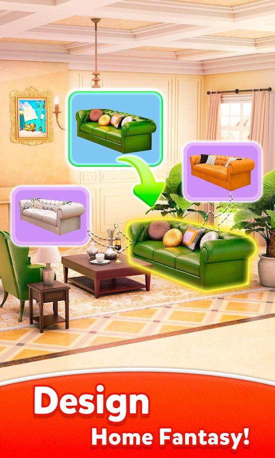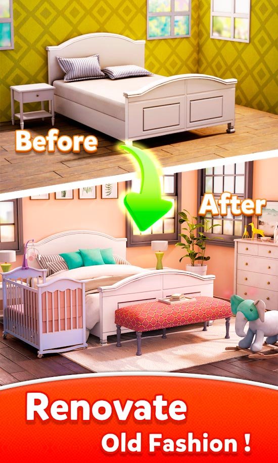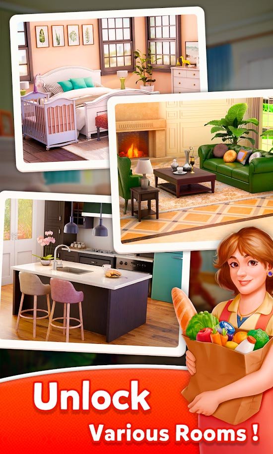 Не нужно много желания, чтобы начать участвовать в такой восхитительной головоломке. Здесь девочки и мальчики смогут на деле продемонстрировать все свои творческие способности и научатся многим вещам стиля или дизайна. В первую очередь пользователи получат доступ к обыкновенному серому домику, в котором не будет ничего. Ваша же задача, сделать удивительный интерьер, который понравился бы въезжающим в жилье людям. Так Home Fantasy - Dream Home Design Game становится отличным способом показать свои таланты творчества на деле и украсить дом необыкновенными изделиями. Выполняйте в процессе множество хитрых планов и используйте стратегию, чтобы быстрее разобраться с головоломками три в ряд. Все что нужно делать, это просто искать соответствия и уже с них подбирать одинаковые ряды.Особенности игры Home Fantasy - Dream Home Design Game