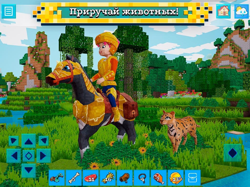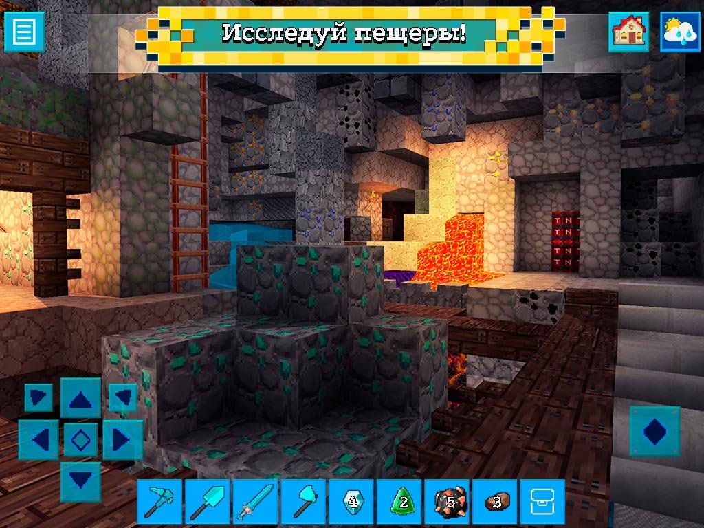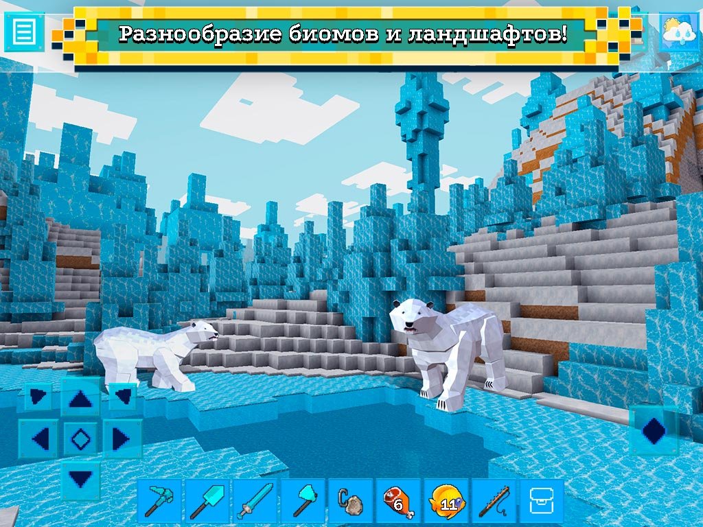 Разработчики провели высокую оптимизацию игрового процесса и поэтому постоянно при каждом запуске пользователям предлагают принять участие в заново сгенерированном мире. Все они абсолютно разные и от этого вы получите приятные эмоции. Открывайте множество новых локаций и наслаждайтесь свободой действий. Динамический геймплей и несколько режимов доступно в RealmCraft 3D Free with Skins Export to Minecraft. Попробуйте сыграть в классическом выживании или просто займитесь творчеством. Есть много разнообразных материалов из блоков и предметов. Всем этим вы должны быть готовы пользоваться. Изучайте местность и исследуйте новые пространства. Побывайте в холодной тайге, на болоте, в пустынях и многих других.