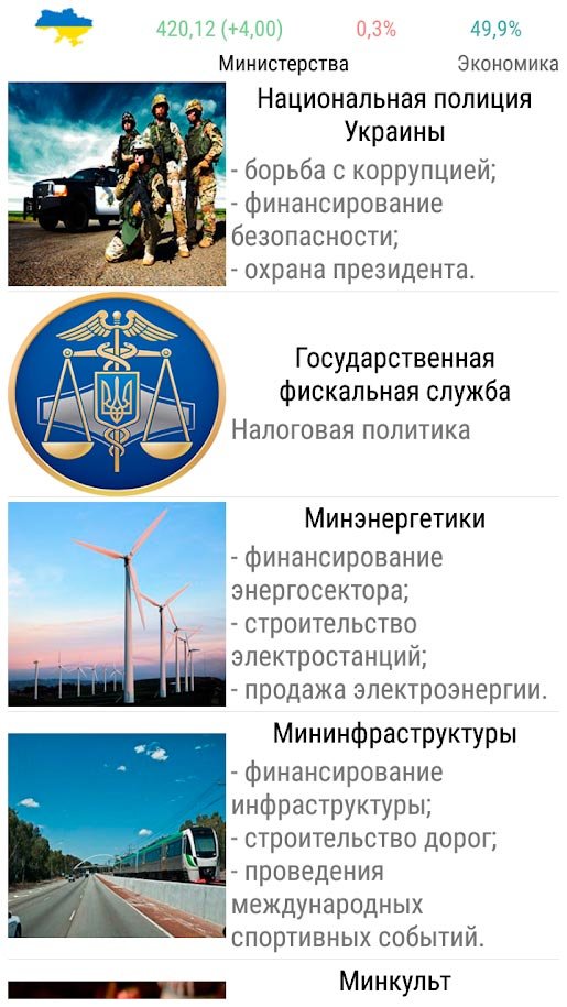 Почувствуйте себя всемогущественным президентом, который должен будет управлять большим государством. Выполняйте огромное количество действий в качестве управляющего страной и принимайте жизненно важные, и даже исторические решения. Продвигайтесь как можно дальше и управляйте сразу одиннадцатью министерствами. Вам предстоит построить процветающую страну и разнообразить ее заводами и естественно горнодобывающими шахтами. Занимайтесь отдельно в Симулятор Украины сельскохозяйственной деятельностью. Конечно же, здесь не обойдется без военной деятельность, поэтому вам предстоит проводить ряд мероприятий по оснащению армии. Развитие в самых популярных отраслях и самостоятельно решайте, по какому пути пойдет ваше государство до великого результата.