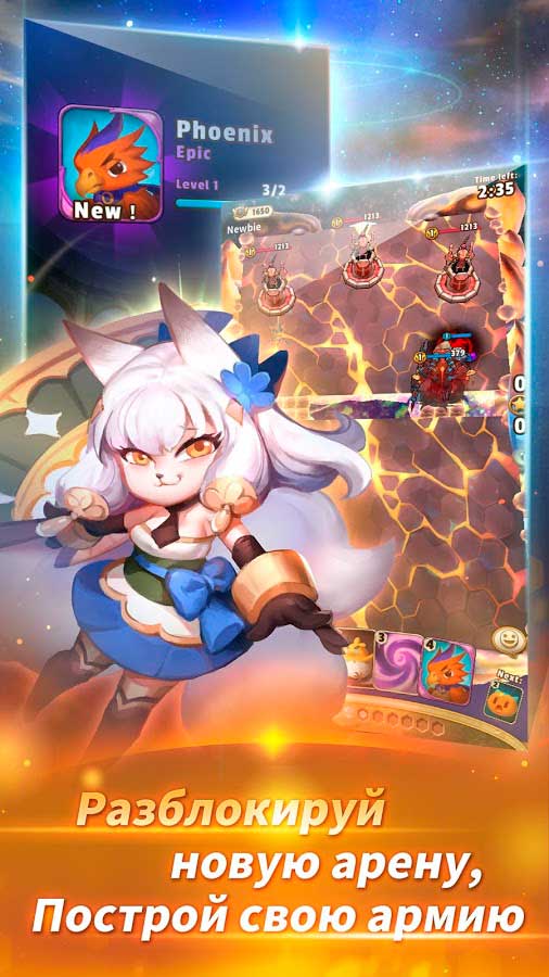 Игрок может выбрать одну из доступных рас и начать проходить ее уникальную историю. Станьте не только лучшим воином, когда сможете скачать Omega Force: Защита башен в бою на андроид, но и самым крутым полководцем, потому что вам предстоит провести свою армию через большое количество сражений и битв. Игрок сможет принять участие в многопользовательском режиме и побороться за королевство. Играйте в динамично развивающемся игровом режиме и участвуйте в онлайн войнах. Каждая битва будет проходить в соотношении два на два, а участвовать могут игроки со всего огромного мира.