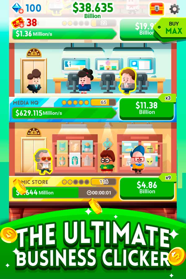 Вам не придется вкалывать часами на работах, потому что можно легко и просто заработать свои деньги, сидя дома. Кликайте и создавайте, чтобы начать получать прибыль в виде миллионов или даже миллиардов. Вскоре вы сможете получить от своего бизнеса только лишь удовольствие и увеличите инвестиции. Покупайте и продавайте, чтобы заработать как можно больше и делайте деньги абсолютно на всем, что есть здесь. Удваивайте и утраивайте прибыль, становясь лучшей.