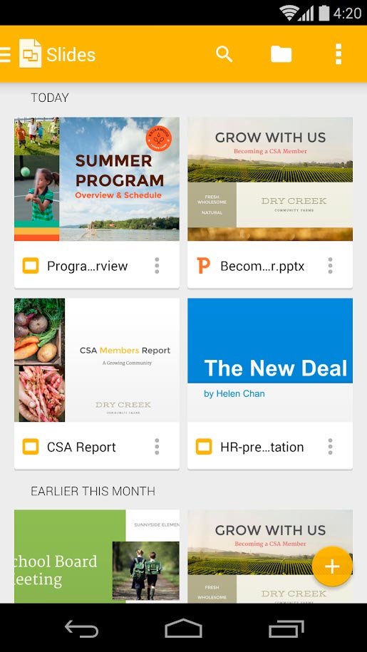 Наверняка у каждого человека из умственной сферы были проблемы, когда нужно создать презентацию, а времени на это совсем нет. Тогда вам идеально пригодиться Google Презентации, программа, в которой в несколько касаний и без особых навыков пользователи смогут создать свою презентацию и откроют доступ к новым. Работайте со своими коллегами или однокурсниками через специальный режим совещаний. Если вам просто нужно создать презентацию, тогда интернет вовсе не понадобиться, и вы легко закончите дело. Добавляйте картинки, меняйте слайды, напишите нужный текст и используйте необходимые фигуры. Полный список функций станет доступен полностью бесплатно. Не нужно переживать за результат, потому что поработать с ним вы можете в любом месте, где бы ни находились.