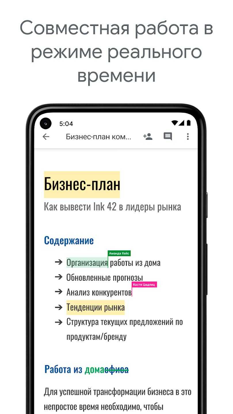 Если у вас появится на телефоне такой нужное и полезное приложение тогда можно будет забыть о проблемах с работой вовсе. Создавайте самостоятельно в любой необходимое для этого время любые типы документации или редактируйте уже имеющиеся. В тот момент, когда вы будете находиться в поездке, а вам срочно нужно будет исправить материал, просто войдите в программу и запустите рабочий процесс. Откройте доступ к огромному количеству функций и приглашайте своих коллег, тогда с этим материалом сможет работать сразу вся группа. Очень важно, что для работы с Google Документы, не нужно иметь подключение к интернету. Добавляйте к записям комментарии и их увидят все ваши сотрудники. Это очень удобно и результативно скажется на работоспособности.
