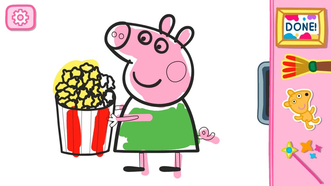 Все поклонники Свинки Пеппы могут раскрашивать огромное количество изображений. Наслаждайтесь великолепными качественными изображениями, и собирайте у себя целую коллекцию. В нем существует множество традиционных методов для рисования. После того, как один из рисунков будет закончен, пользователи смогут получить великолепный подарок. Используйте его, чтобы нарисовать новую картинку и весь этот процесс обязательно понравиться детям. Пользователи в Peppa Pig (Свинка Пеппа): Paintbox смогут самостоятельно выбрать для себя фон или холст, на котором можно будет рисовать. Вместе с Пеппой в этом симуляторе будут доступны и другие персонажи из мультика, вместе с которыми вы сможете продолжать наслаждаться испытаниями.Особенности игры Peppa Pig (Свинка Пеппа): Paintbox