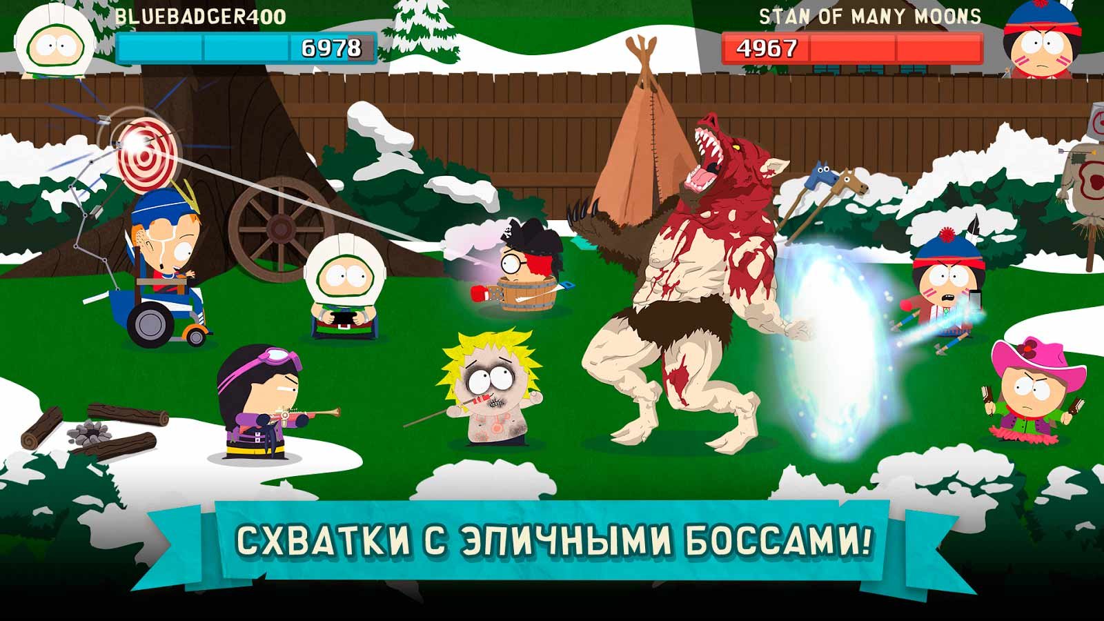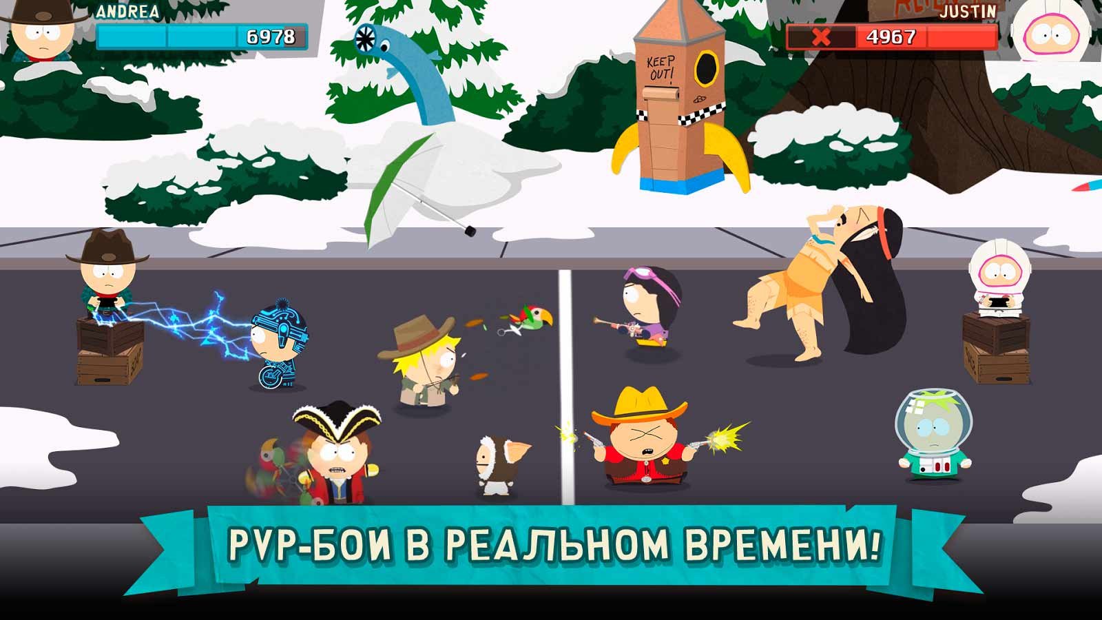 Если скачать South Park: Phone Destroyer на андроид можно будет познакомиться с большим количеством разнообразных персонажей самостоятельно в этом невероятном мире. Вас ждет огромное количество юмора и смеха вместе с удивительными приключениями. Игрок должен будет собирать карточки персонажей, обладающих сверхспособностями, а потом использовать их уже в боях с другими соперниками онлайн режима. Собирайте огромную коллекцию из разнообразных карточек и доставайте их в любой момент, чтобы принять участие в битвах. Эта игра достойна внимания миллионов и у нее полно моментов, которые действительно могут порадовать.
