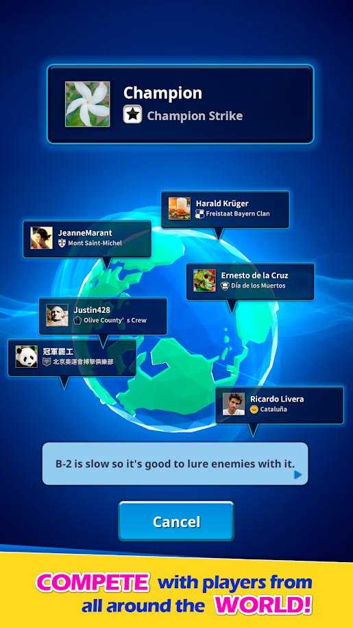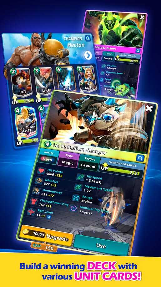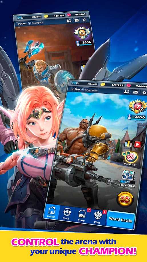 В этом крутой игре объединены чемпионы, магические заклинания и огромное количество карт. Пользователи должны собирать собственные комбинации колоды, чтобы добиваться прогресса. Подключайтесь к битвам в режиме ПвП и призывайте на войну величайших юнитов. Каждый поединок проходит в автоматическом режиме и это невероятно интересно. Удобно пользоваться навигацией, благодаря отзывчивому геймплею. Участвуйте в жестоких схватках каждый день и верните себе славу командира. Всего доступно в Champion Strike больше сорока оригинальных и могущественных карточек. Многопользовательский режим затрагивает пользователей со всего света, и вы можете стать мастером, заняв первую позицию в глобальном рейтинге.