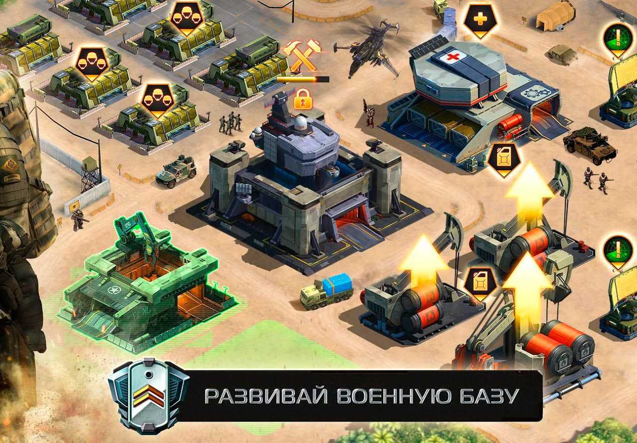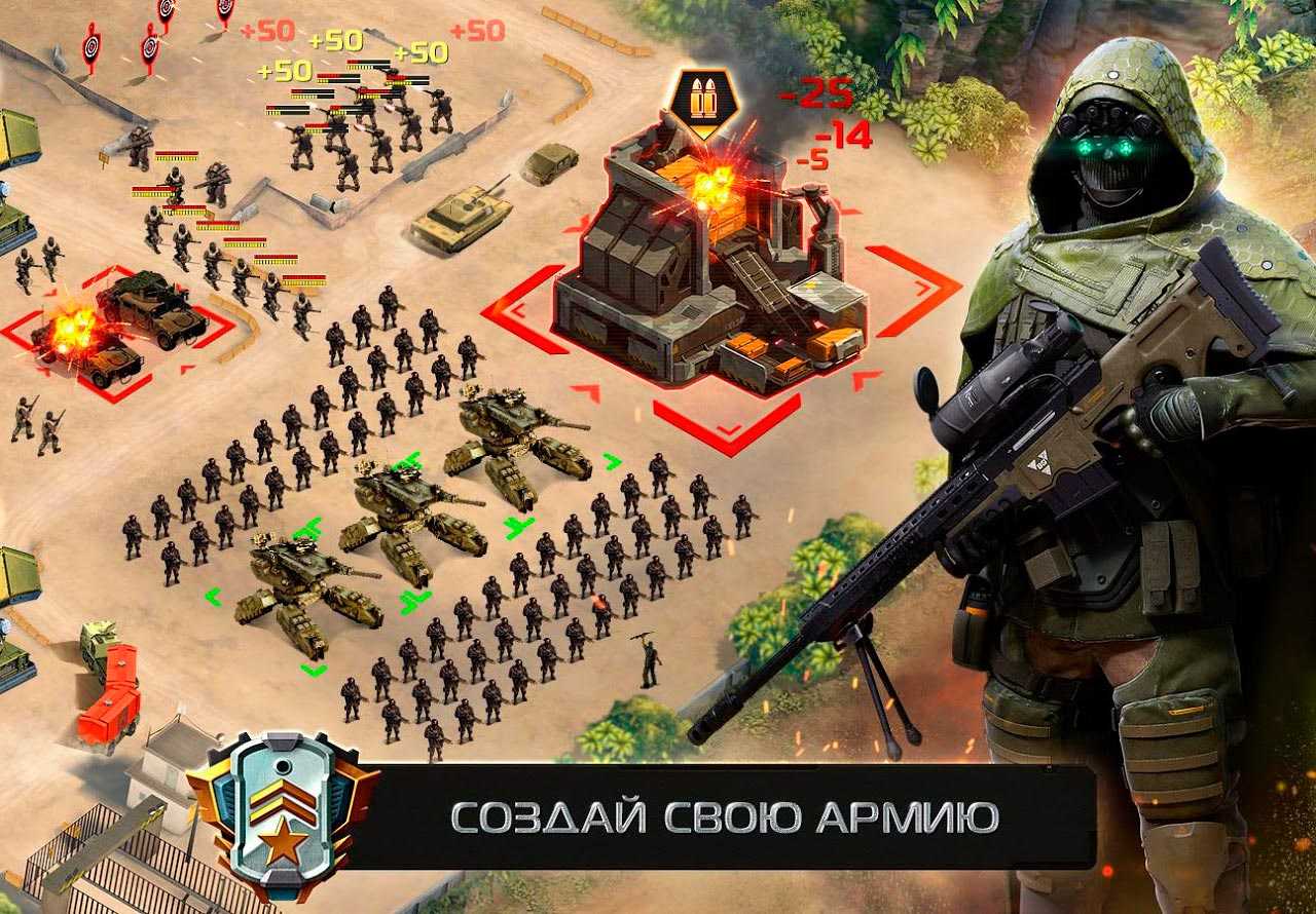 Развивайте собственную страну и улучшайте ее окрестности. Каждый день принимайте участие в жестких поединках и путешествуйте по карте, захватывая новые территории и ресурсы. Постройте больше хранилищ, куда можно будет отправить все завоеванное у соперников. Играть в Soldiers Inc: Mobile Warfare можно не только в режиме онлайн, но и в одиночной компании. Все действия этого игрового процесса проходят в будущем 2037-го года, когда в Южной Африке произошла война и теперь компании с могущественными силами собираются здесь, чтобы побороться за влияние. Воспользуйтесь лучшим оружием и создавайте инновационную технику. Вести борьбу нужно уметь на всех фронтах, чтобы добиться величайшей победы. Эта стратегия вызывает только приятные эмоции и оставляет массу впечатлений.Особенности игры Soldiers Inc: Mobile Warfare