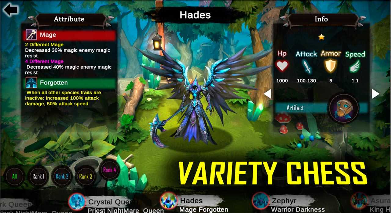 Научитесь правилам шахматных поединков и ведите своих воинов к грандиозной победе. Управляйте балансом между разными силами и наращивайте темп игры, чтобы стать настоящим королем. Впереди будет ждать множество страшных и опасных врагов, с которыми вы станете величайшим воином. Всего в Auto Chess Defense – Mobile подобрано больше 50-ти персонажей, со своими способностями и навыками. Они разделены на 10 классов, из которых можно составлять комбинации. Освобождайте легендарных персонажей и научитесь пользоваться полем в клеточку 8 на 8. Каждый матч будет напряженным и тяжелым для игроков, потому что противостоять придется серьезным соперникам. Путешествуйте по миру и поднимайтесь все выше в таблице рекордов.Особенности игры Auto Chess Defense – Mobile