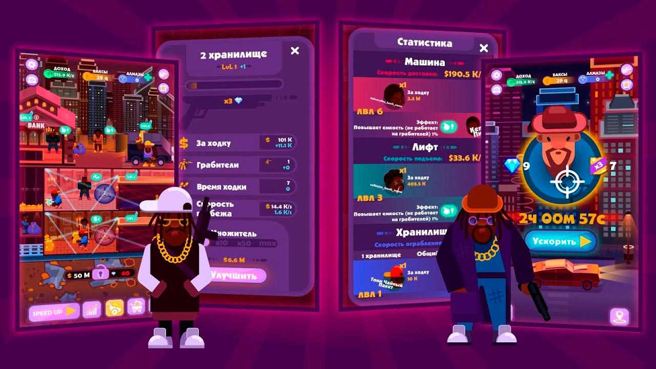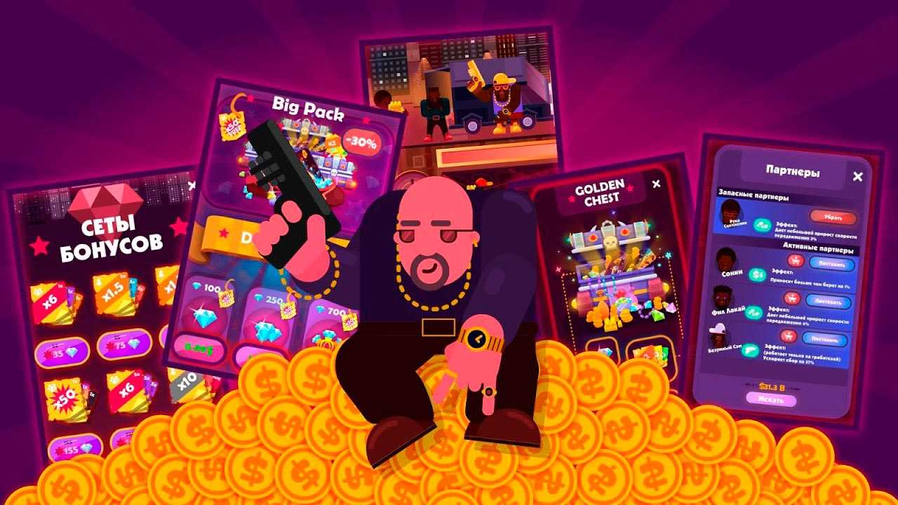 Окунайтесь в захватывающие дух разборки между бандитами самых разнообразных кланов. Вам предстоит разбираться на улицах с вражескими армиями и захватывать новые бизнес структуры. Управляйте городами и получайте прибыль, которая поможет мафии увеличить свои дохода и сделает ее более уважаемой. Инвестируйте с целью увеличить доходность, и когда ваша система будет отработана до мелочей, посещайте игру просто для того, чтобы собирать денюжки. Нажимайте как можно чаще по экрану и тогда сможете позволить себе в Idle Mafia Tycoon все что угодно. Набирайте помощников и следите за тем, как они будут выполнять свою работенку. В игре можно пройти через разные эпохи, начиная еще с 30-х годов, времен появления первой американской мафии.