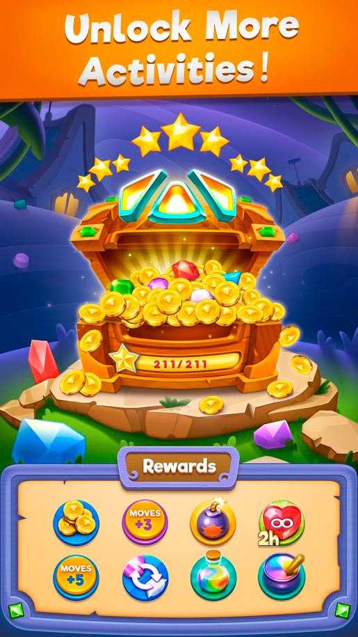 Более ста увлекательных и веселых уровней ожидает игрока в этой головоломке. Прорывайтесь через многочисленные испытания и забавляйтесь с прикольными персонажами. Чтобы добиться наилучших результатов, необходимо собирать драгоценности и составлять из них комбинации от трех камней в одном ряду и даже более. Вы так сильно полюбите этот игровой процесс, что потом будет очень трудно оторваться. Поднимайте свои рекорды еще выше и обгоняйте друзей, участвующих в этом забавном безумии. Для продолжения игры не потребуется интернета, а значит наслаждаться в Bling Crush - Free Match 3 Puzzle Game можно в любом месте и время. К тому же три в ряд будут интересными для любой возрастной категории. Откройте новые карты в волшебной атмосфере и поделитесь с друзьями.