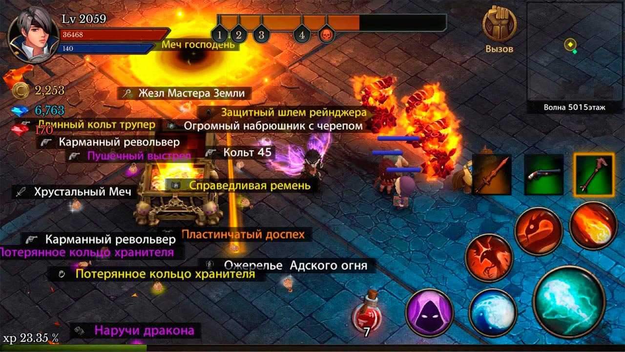 В Dungeon Chronicle вас ждет огромный арсенал оружия, включая мечи, посохи, пистолеты и многое другое, а также множество предметов экипировки с различными бонусами. Развивайте своего персонажа и попробуйте пройти как можно больше подземелий с опасными боссами.