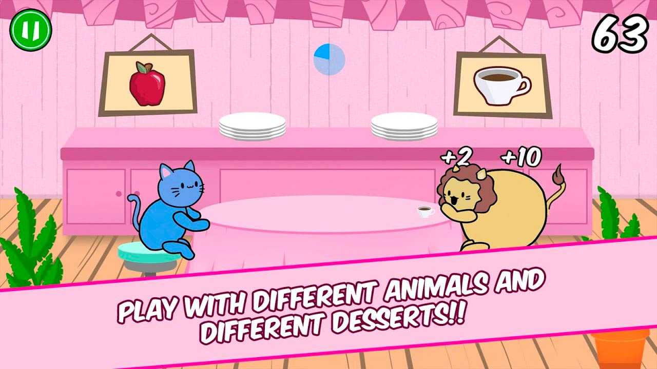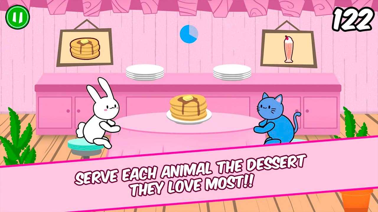 Кролик блин и кошачий молочный коктейль – это множество уровней, в каждом из которых нужно дать зверьку его любимые десерт, но не ошибиться с выбором. Чем больше вы проходите уровней, тем сложнее они становятся, растет скорость игры и количество сладостей, которые предлагаются животным.