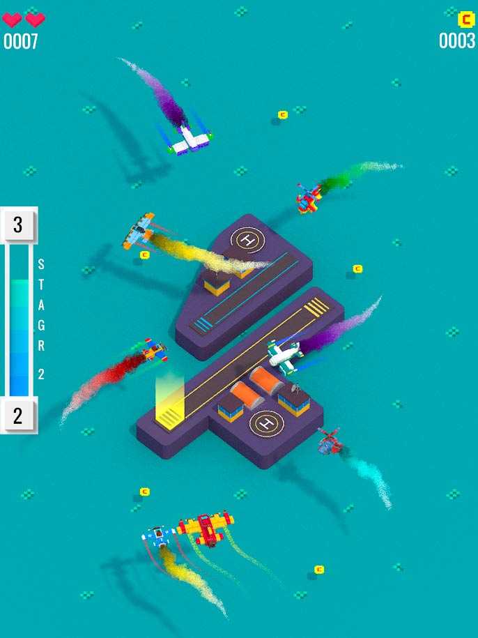 - Сопровождайте самолеты и вертолеты, попутно собирая бонусы;