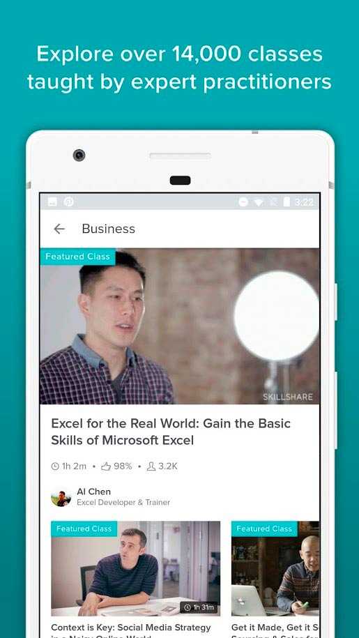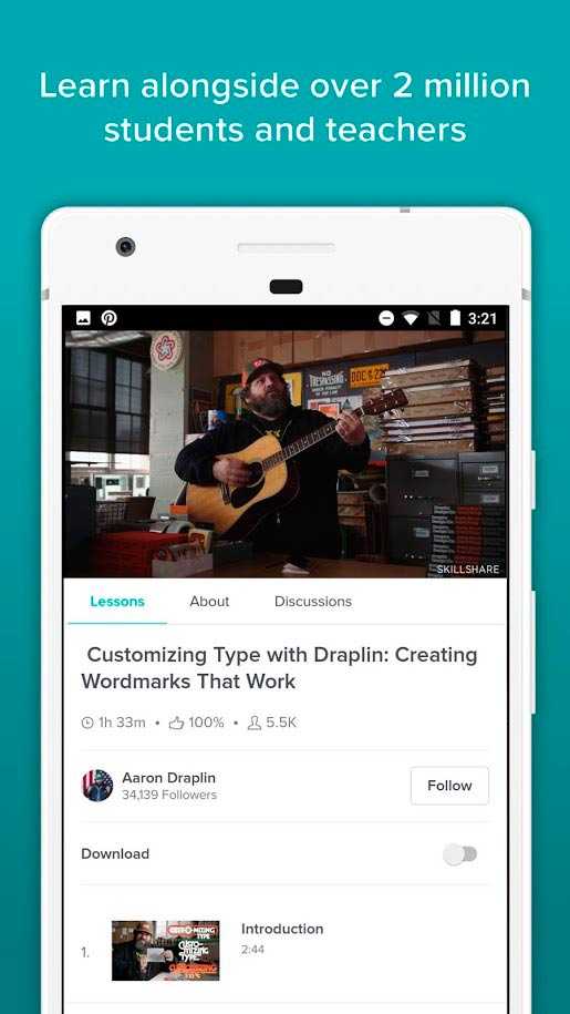 Онлайн-уроки Skillshare – это короткие уроки в удобном формате, позволяющем обучаться, даже если у вас плотный график. Также вы сможете загружать интересующие вас материалы, чтобы знакомиться с ними в оффлайн-режиме, например, в поездке или там, где Интернет недоступен.