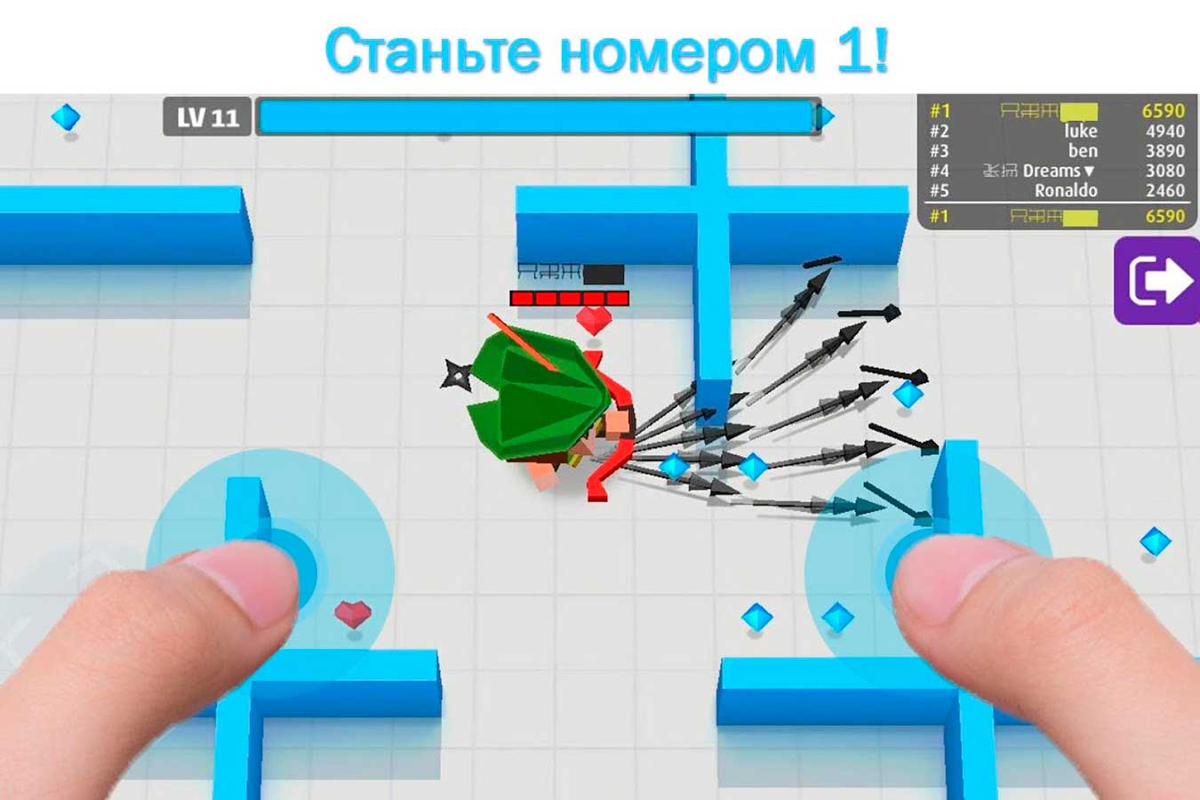 Хотелось бы обратить внимание, что возможность скачать Стрела.io на андроид является бесплатной. Игра радует нас ассортиментом героев. Пиксельная графика очень интересна и к ней еще не все геймеры смогли привыкнуть. Заходите в режим мультиплеера, устраивайте схватки с настоящими людьми и не позволяйте собственным пальцам просто так останавливаться на достигнутых результатах. Нужно делать все возможное для того, чтобы побить прошлый свой рекорд.Новая игра в стиле io - Стрела