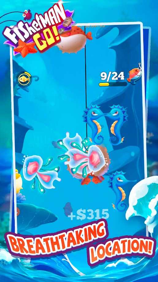 В Fisherman Go! вы сможете улучшать свою удочку, увеличивая глубину, на которую ее можно закинуть и количество рыбы, которое она может вытянуть. Ловите разнообразных рыб, открывайте доступ к новым локациям, где вас ждет еще больше удовольствия от рыбалки.Особенности: