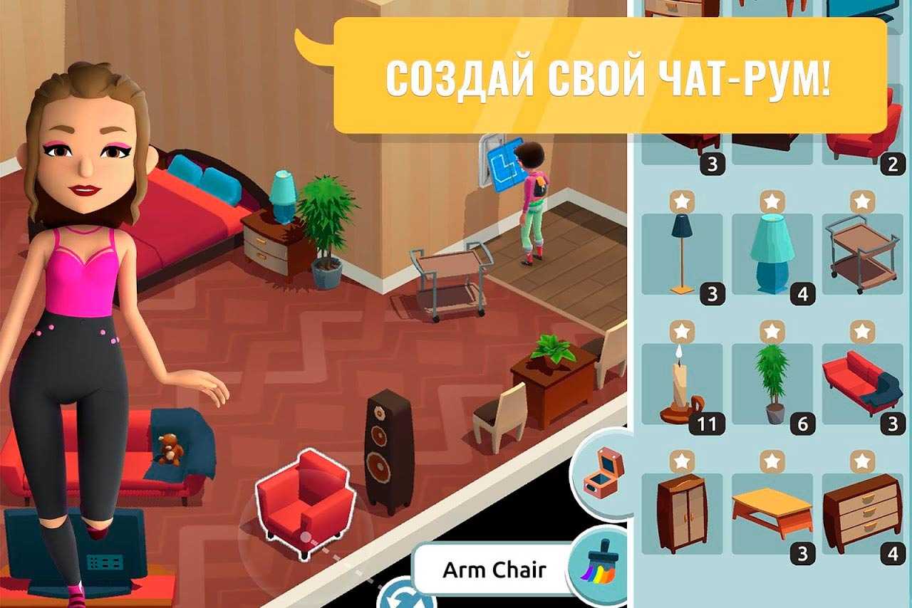 - экспериментируйте со своей внешностью и обставляйте комнату по своему вкусу.