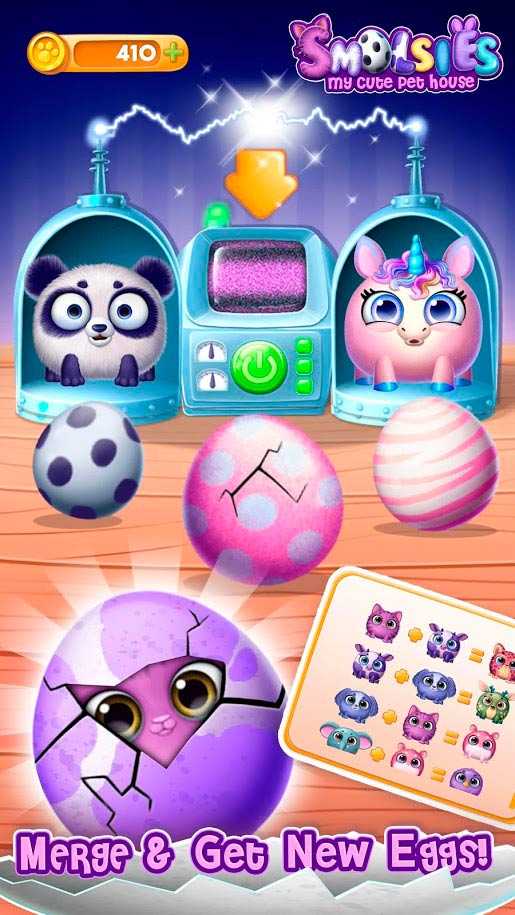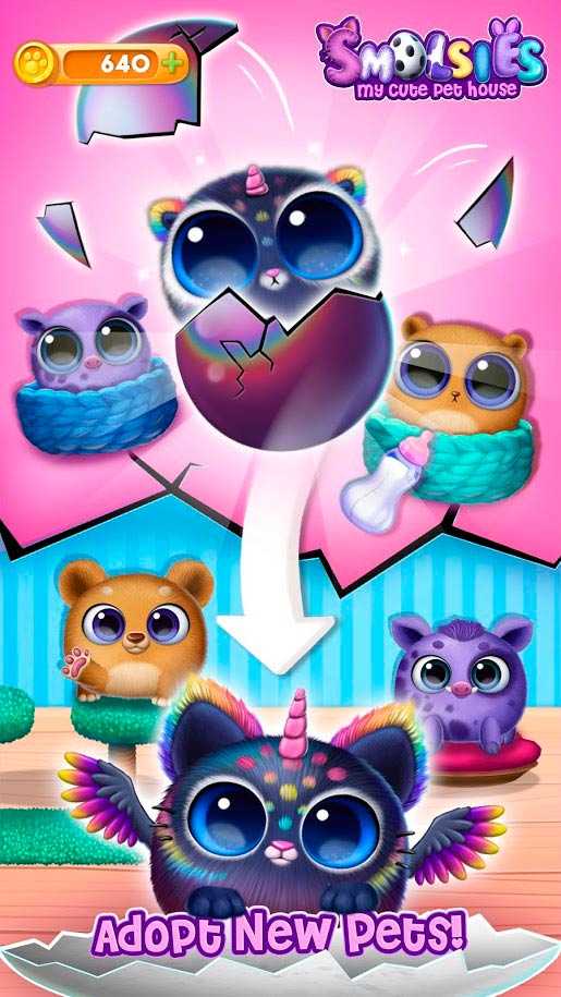 В Smolsies - My Cute Pet House вы сможете открыть 18 разных питомцев, соединяя их в специальной машине. Соберите полную коллекцию милых зверей от собак и кошек до сказочных драконов и единорогов. Зарабатывайте монеты, чтобы разблокировать новые игрушки для ваших малюток.