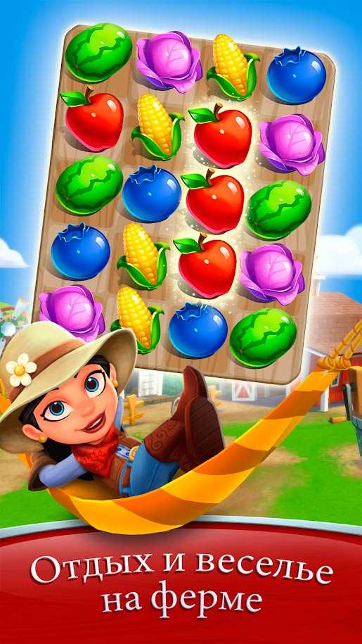 - игра «три в ряд» с аппетитными фруктами, овощами и ягодами;