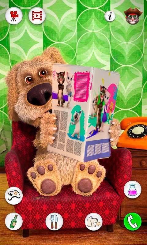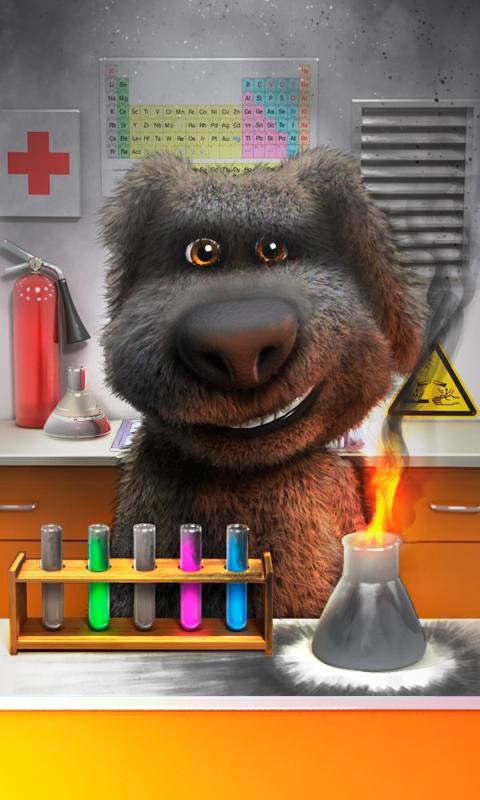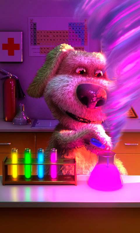 Когда сможете скачать Говорящий Бен на андроид, не забывайте водить питомца в его любимую лабораторию, ведь это его самое любимое место, где он может расслабиться и порадоваться своим новым изобретениям. Вместе с Беном игрок сможет заниматься проведением огромного количества разнообразных химических опытов и будет смешивать в разных пропорциях несколько колбочек. В результате у вас будет шанс увидеть какую-нибудь эффектную и необычную реакцию. Все это вы сможете записать на видео для себя, а потом даже поделиться с друзьями забавными моментами в лаборатории.