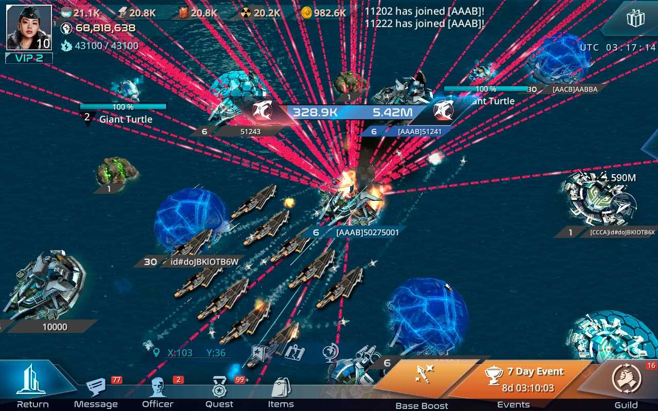 В Sea Fortress - Битва Флотов вы сможете вступать в союзы с друзьями, чтобы вместе охотиться на сильных монстров и расширять свои владения. Проходите интересную сюжетную компанию или попробуйте свои силы в сражении с другими игроками за уникальные награды.