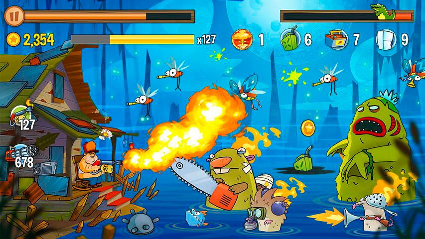 Раньше игрок мог играть только в одиночной компании. Теперь же если скачать Swamp Attack на андроид можно будет принять участие в многопользовательском режиме и встретиться с другими игроками. Будет намного веселее, чем прежде. Если есть желание все-таки играть в одиночном режиме, тогда нужно быть готовым пройти больше трех сотен уровней со своими особенностями.
