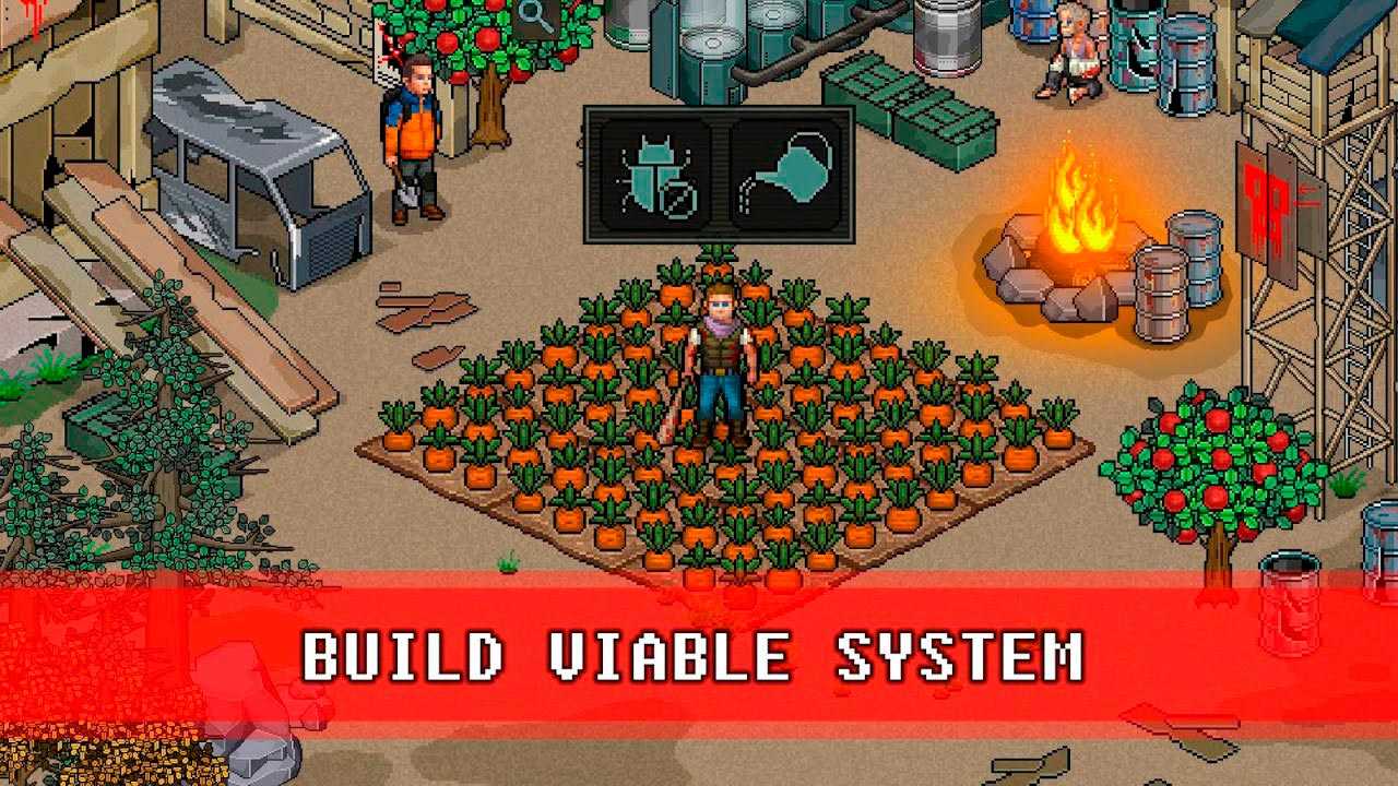В Fury Survivor: Pixel Z вам предстоит построить собственный лагерь, который станет отправной точкой в ваших поисках и ценнейшим источником ресурсов. Выращивайте различные растения, изготавливайте необходимые предметы и храните здесь ваши запасы.