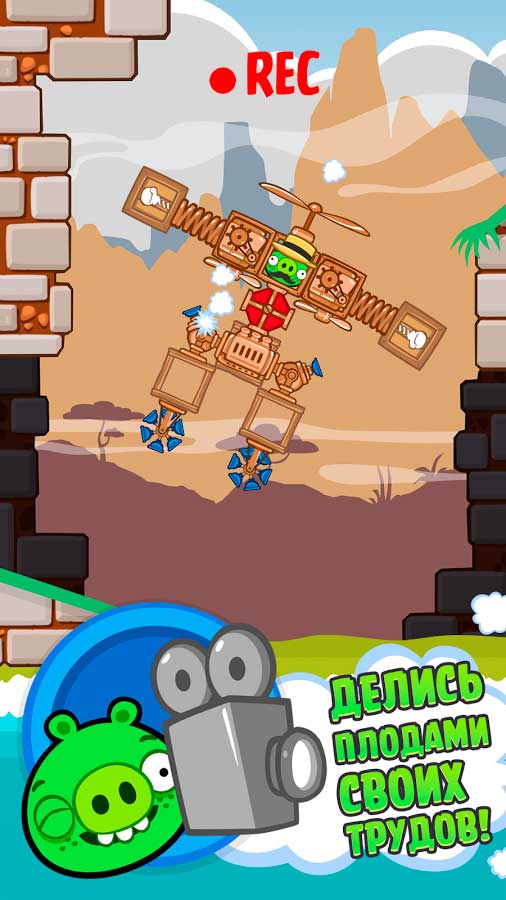 Вам обязательно понравится эта полная свободы творчества игра, которая способна затянуть на множество часов подряд. Постройте оригинальное средство для полетов, чтобы помочь поросятам, а потом протестируйте его в небе. Быть может, у вас получится подняться в воздух и пролететь до заветной цели. Постоянно исследуйте местность и собирайте как можно больше ящиков с инструментами, которые помогут в создании летательного аппарата. Собирайте огромное количество разнообразных устройств и устанавливайте их. В дополнительных уровнях вас ждет эксклюзивные инструменты.