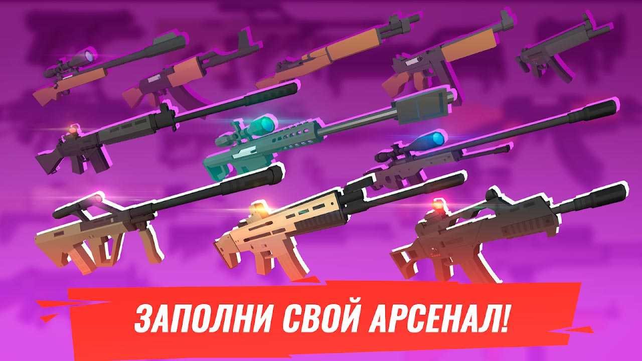 Отправляйтесь в новое веселье и приглашайте друзей, чтобы организовать группировку и получать еще больше удовольствия. Пиксельные квадратные персонажи берут в руки оружие и выходят на охоту. Простота управления в Пиксель Стрелялка — Oнлайн Игра Битва не усложнит задачи даже новичкам. Вы можете пользоваться огромным арсеналом вооружения и каждый день выходить в рейды, в которых можно будет подобрать еще больше наград и призов.