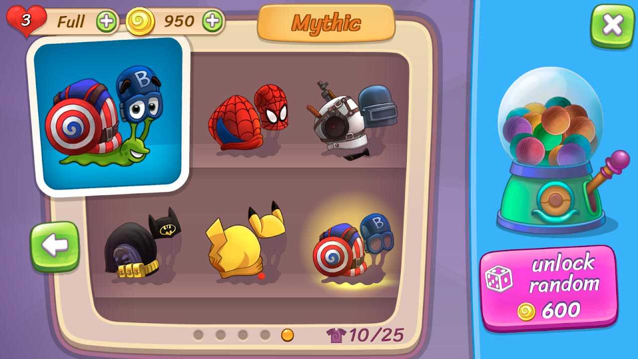 Снова Улитка Боб 3 отправляется в путешествие, чтобы добраться до Супер-Раковины и помогать ему должны пользователи. Одевайте специальные скины, используйте бонусные предметы и помогайте главному герою достичь этой долгожданной цели.