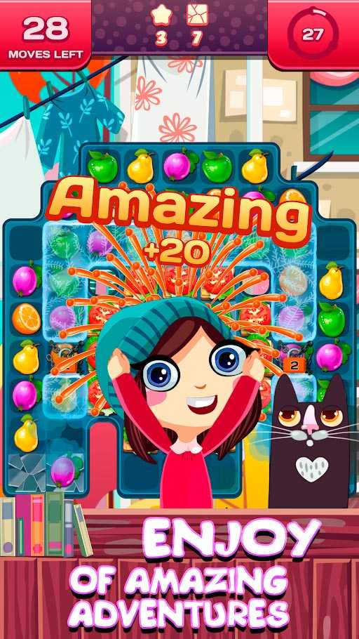 Добавь свой мир в эту потрясающую игру, сделай его лучше и используй для этого фантазию. Тебе предстоит пройти большой путь, чтобы составлять фрукты и превращать их в подарочные бонусы. Разбивай линии и выигрывай призы, за которыми в Match 3 Saga - Fruits Crush Adventure гонятся все пользователи.Особенности: