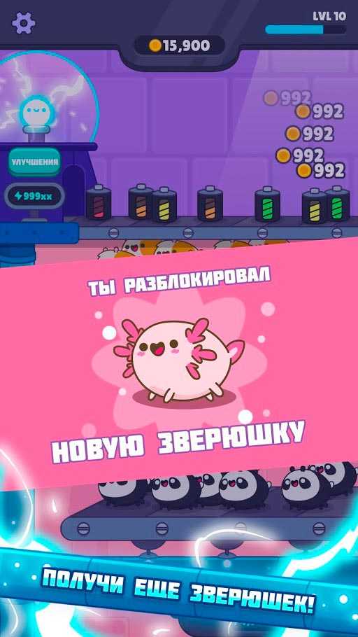 Самые милые домашние питомцы ожидают встречи с новым игроком в этом путешествии. Ты должен будешь правильно использовать их силы и продвигаться через сотни увлекательных заданий. Впереди в Idle Critters ожидает много всего веселого и интересного. Запусти в производство энергию и зарабатывай на этом состояние.Особенности: